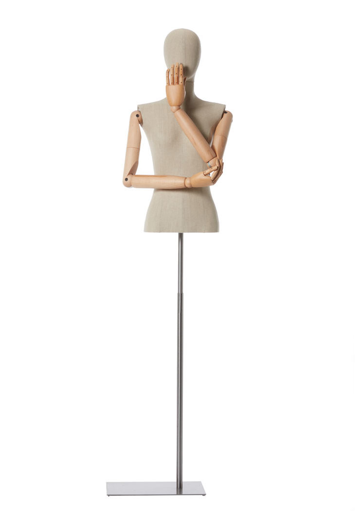 La Rosa’s new 360° system allows the jointed wooden arms to make a 360-degree circular movement. A simple, innovative device that starting today allows unlimited arm motion of the bustform and mannequin, increasing their expression and use potential.
