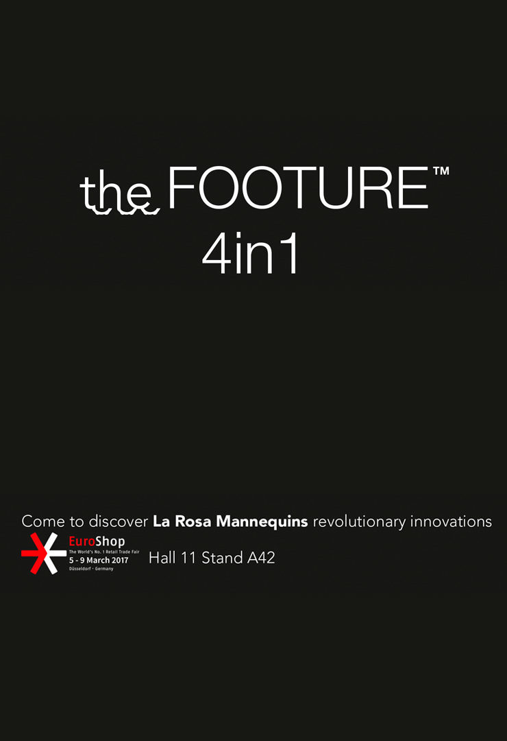 Adesso c’è FOOTURE™, il piede meccanico che si adatta automaticamente a 4 differenti altezze di tacco nel momento in cui viene calzato. Utilizzabile su tutti i manichini La Rosa, FOOTURE™ può essere rivestito o verniciato di qualsiasi colore